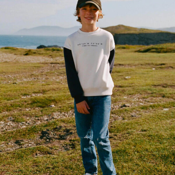 | Round neck shirt with contrasting layered long sleeves